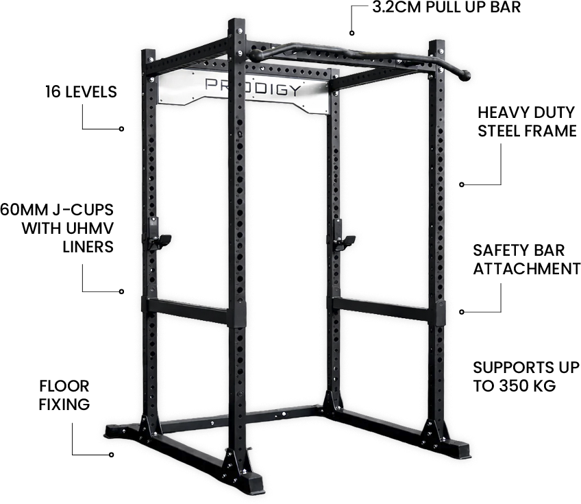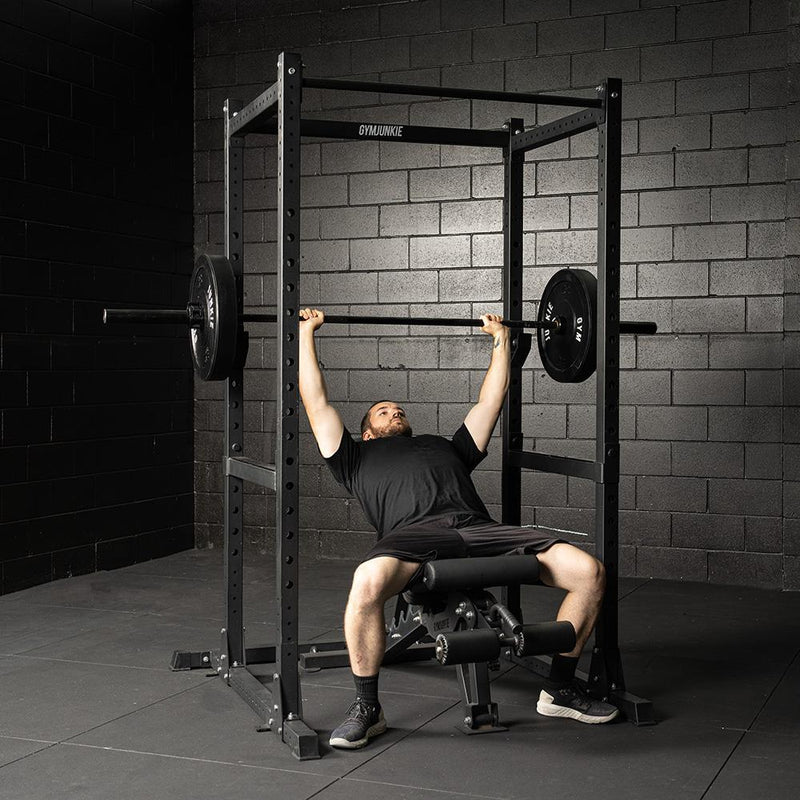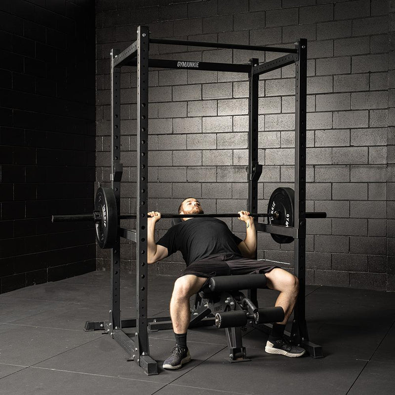 This Gym Junkie Power Rack offers an incredibly heavy-duty steel frame and supports up to 350kg. We’ve added bonus extension kit which seamlessly expands the rear of your power rack, providing an optimal space for weight plates and a variety of additional attachments. The rack also includes the cable extension attachment which allows you to increase the range of workout you can achieve.