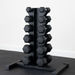 Space-saving vertical design – small footprint with room for six pairs of dumbbells.